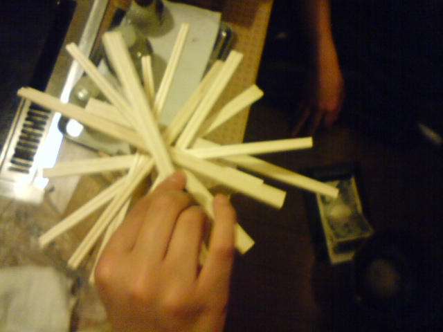 友達と交互に作った割り箸アート←